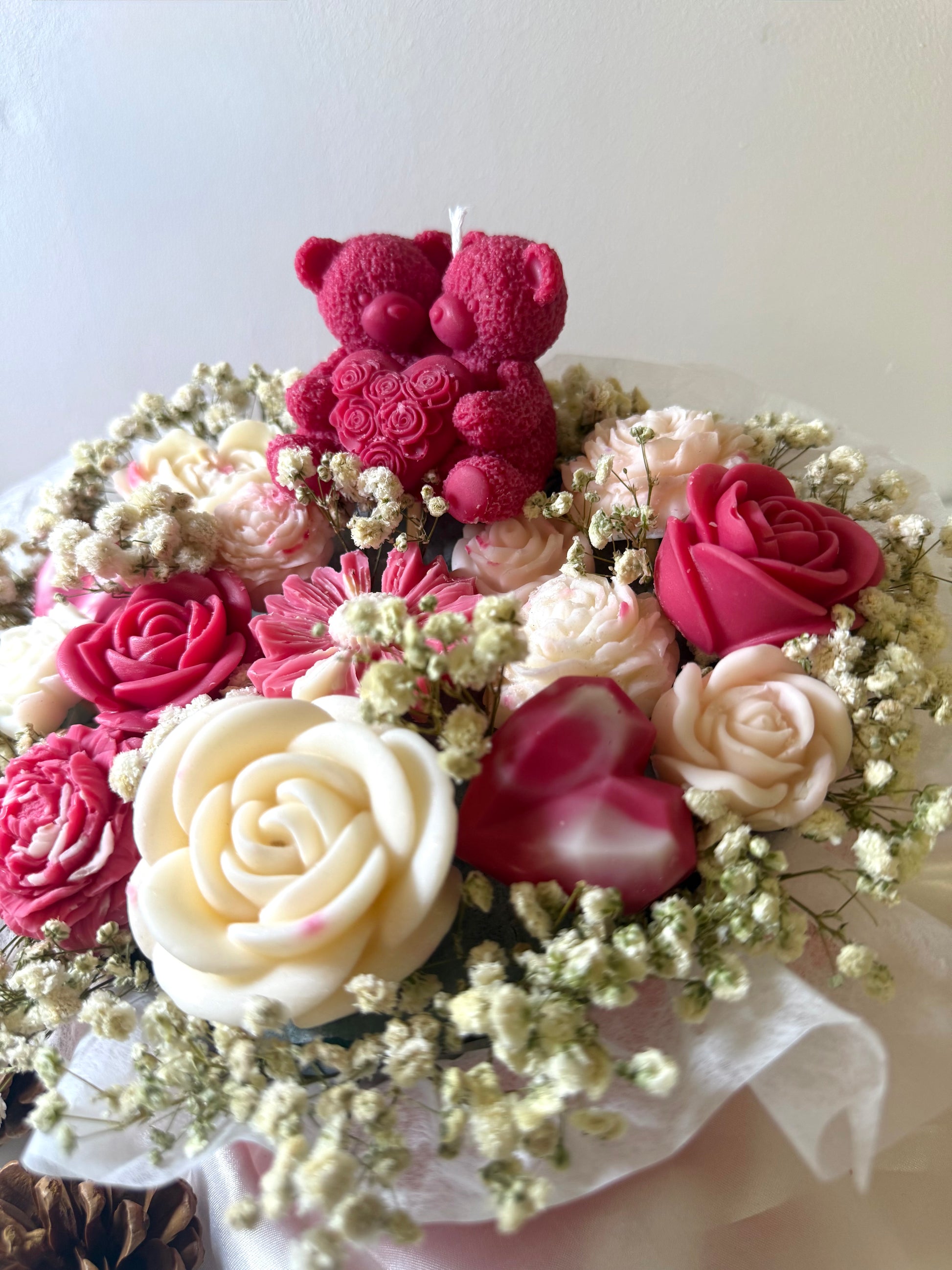 Surprenez votre bien-aimé(e) avec notre Bouquet cœur Saint-Valentin ! Ce bouquet en forme de cœur, accompagné de fondants parfumés en forme de fleur, crée une expérience sensorielle inoubliable. Offrez non seulement un cadeau, mais aussi une déclaration d'amour pleine de douceur et de passion !
